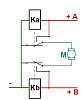 Если на +А подается плюс, то срабатывает реле Ка и и мотор М вращается в одну сторону. Если на +В подается плюс, то срабатывает реле Кв и мотор М вращается в другую сторону. Одновременно + А и + В подаваться не могут.